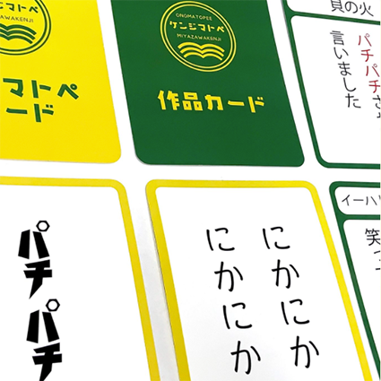 宮沢賢治作品特有のオノマトペ(擬態語・擬音語・擬声語の総称)に着目したカードゲームを制作。オノマトペの面白さに触れながら表現力や想像力を子どもに身につけてほしいと願う保護者をメインターゲットにしたプロモーション企画を立案しました。企画の着眼点の良さだけでなく、実際にカードゲームとしての完成度もとても高く、最優秀賞に選ばれました。
