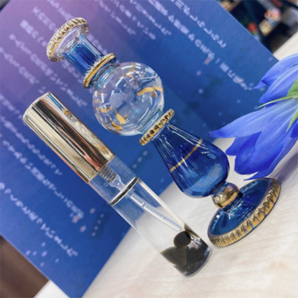 宮沢賢治の世界観を体験できる観光列車を中心としたプロモーションを立案。車両ごとに食堂・ギャラリー・グッズ販売・プラネタリウムなど、宮沢賢治を堪能できる工夫が満載です。グッズの1つとして作品にちなんだ香りを再現したパフュームオイルを企画し、車内限定販売の特別デザインの瓶をモックとして実際に制作しました。