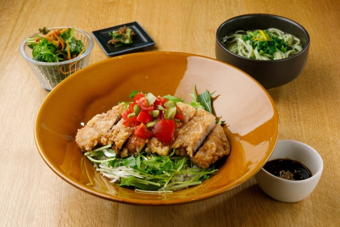 豚ロースの醤丼とオリーブ麺セット 1,500円(税込み)