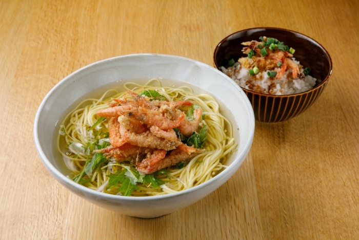 さるエビのオリーブラーメン 小丼付 1,200円(税込み)
