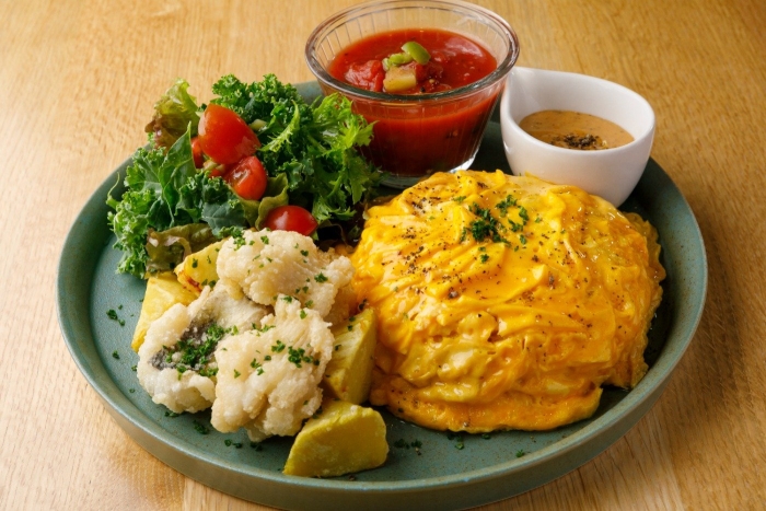 ハッピー卵のオムライス 島鱧のフリット オリーブトマトソース 1,500円(税込み)
