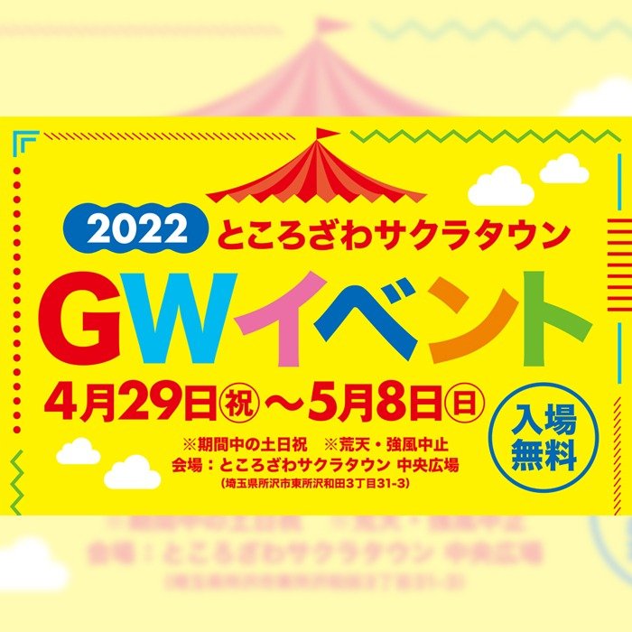 4月29日(祝)~5月8日(日) のゴールデンウィーク期間(平日を除く)、ところざわサクラタウンでは、屋外オープンスペース「中央広場」を中心に、家族みんなで楽しめる様々なイベントを開催します。