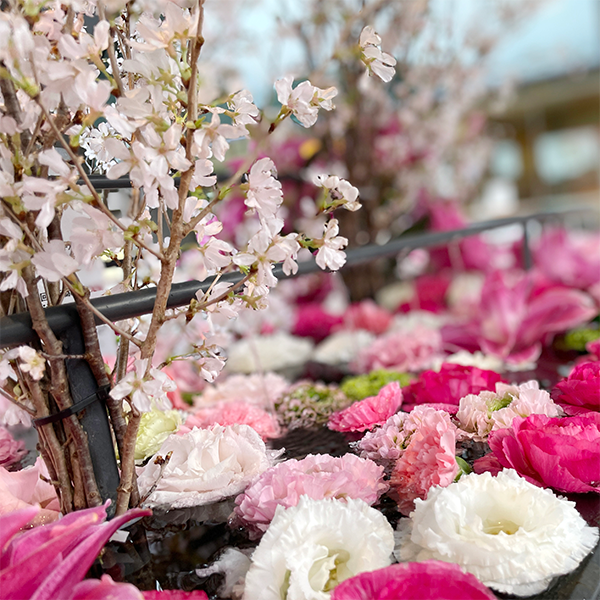 春の訪れとともに、武蔵野坐令和神社の手水舎がサクラをテーマに晴れやかな花々で彩られます。