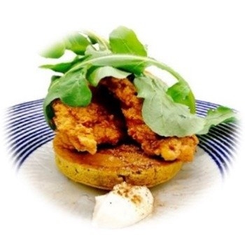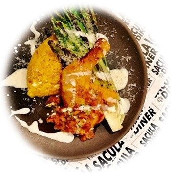 アルバム『Vu Jà Dé』に収録されている「Ain't Nobody Here But Us Chickens」。<いるのは俺たちチキンだけ>といいつつ、ライスも楽しめるNYスタイル チキンオーバーライス。骨付き鶏腿肉のタンドリーと2種のソ―ス、ヨーグルトと所沢トマトサルサ。