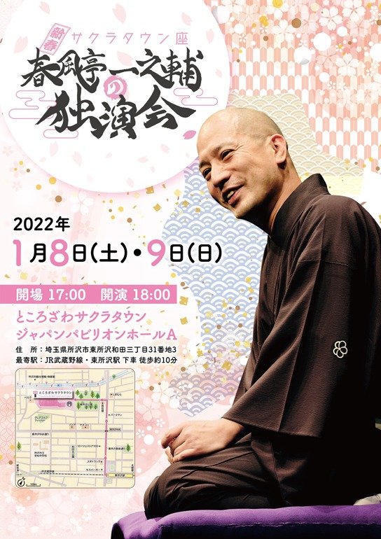 「いま最もチケットが取れない落語家」春風亭一之輔による公演『新春サクラタウン座 春風亭一之輔の独演会』を2022年1月8日(土)・9日(日)の2日間、ジャパンパビリオンホールAで開催。春風亭一之輔師匠が皆様に、新春初笑いをお届けいたします!