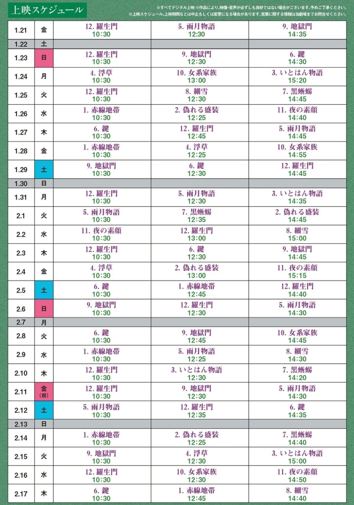 2022年1月21日(金)から開催いたしておりました「京マチ子映画祭」は、新型コロナウイルスの感染が急拡大している状況を鑑み、誠に勝手ながら2022年1月28日(金)以降の上映を中止させていただくことといたしました。