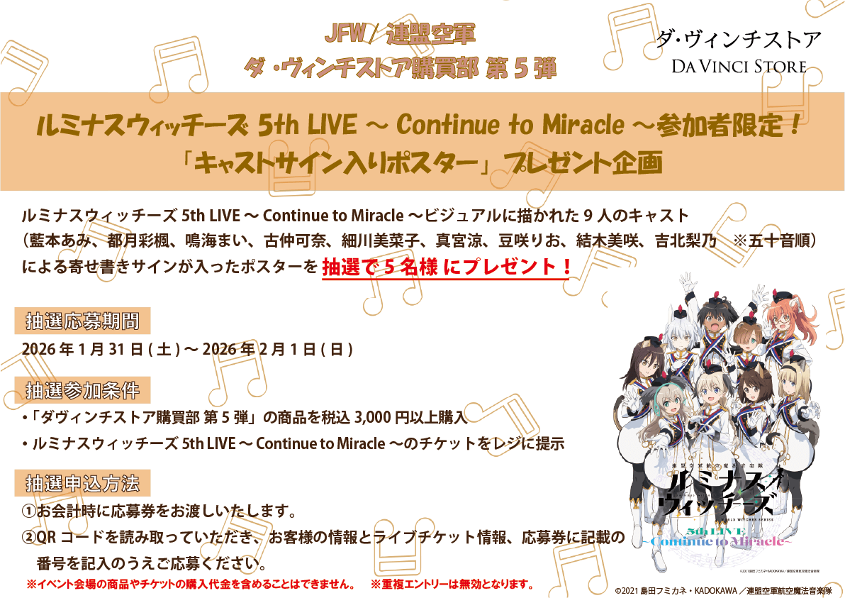さらに、ご好評にお応えして「ルミナスウィッチーズ5th LIVE~Continue to Miracle~」参加者限定で、今回も「キャストサイン入りポスター抽選会」を開催します!
