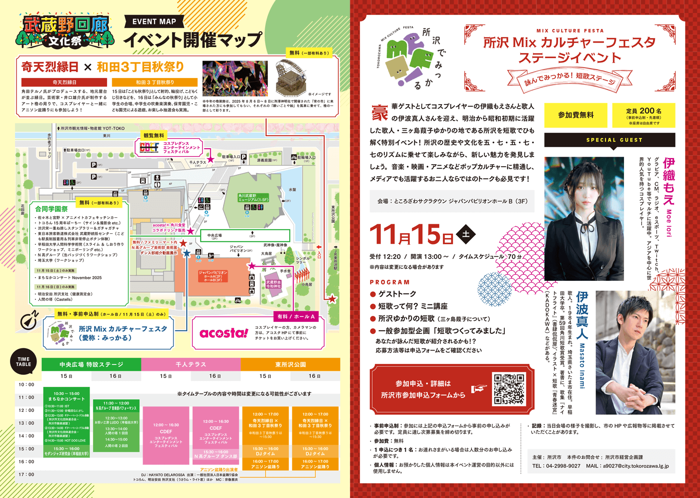 人気コスプレイヤーの伊織もえさんと、歌人の伊波真人さんが所沢にやってくる!『詠んでみっかる!短歌ステージ』を11月15日(土)にところざわサクラタウンで開催します。