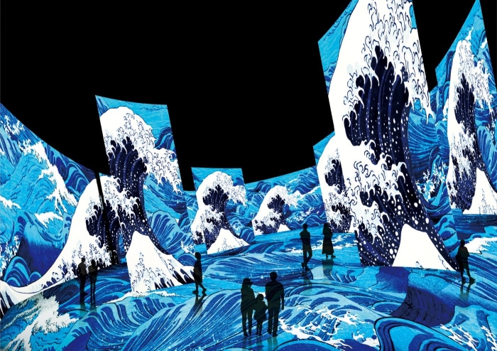 角川武蔵野ミュージアム1階グランドギャラリーにて好評開催中の体験型デジタルアート展《浮世絵劇場 from Paris》。