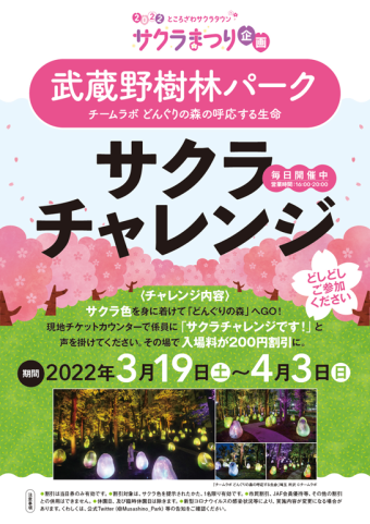 「サクラまつり2022」会期中、武蔵野樹林パーク内にある「チームラボ どんぐりの森の呼応する生命」にて『サクラチャレンジ』を開催します。