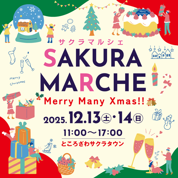 ところざわサクラタウン 中央広場にて、2025年12月13日(土)・14日(日)に「サクラマルシェ〜Merry Many Xmas!!〜」を開催。食品や雑貨の販売はもちろん、さまざまなワークショップも実施します。