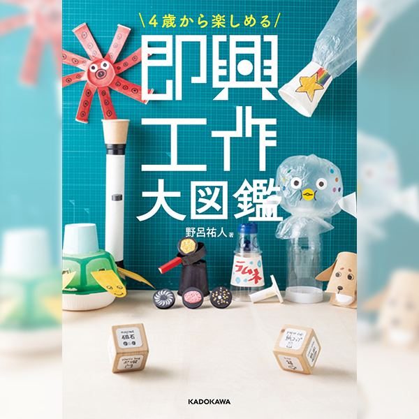『4歳から楽しめる 即興工作大図鑑』(1,650円税込)は、磁石×紙コップ、ポリ袋×ペットボトルなど、身近な素材を掛け合わせた、アイデアあふれる工作で大人気のシリーズ「即興工作」の初書籍。