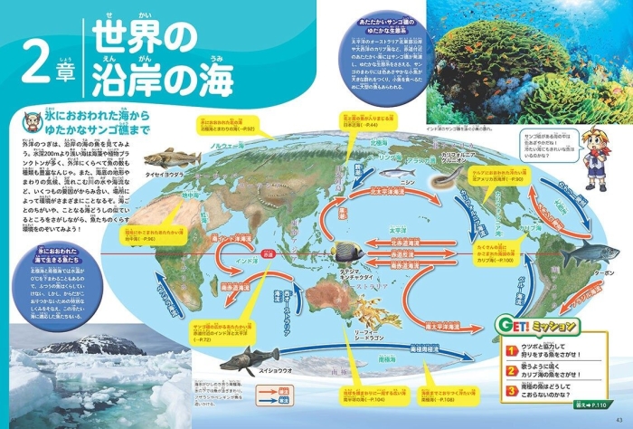 「角川の集める図鑑GET!」は、“考える力を育む”をコンセプトに、KADOKAWAが2021年に創刊した新しい学習図鑑シリーズです。「角川の集める図鑑 GET! 魚」は、キャラクターたちが旅をしながら世界の魚を紹介。美しい生態写真や謎解き要素などが子どもの知的好奇心を喚起し、魚のくらしや進化、さらに環境も含めた知識を体系的に楽しく身につけられる内容となっています。