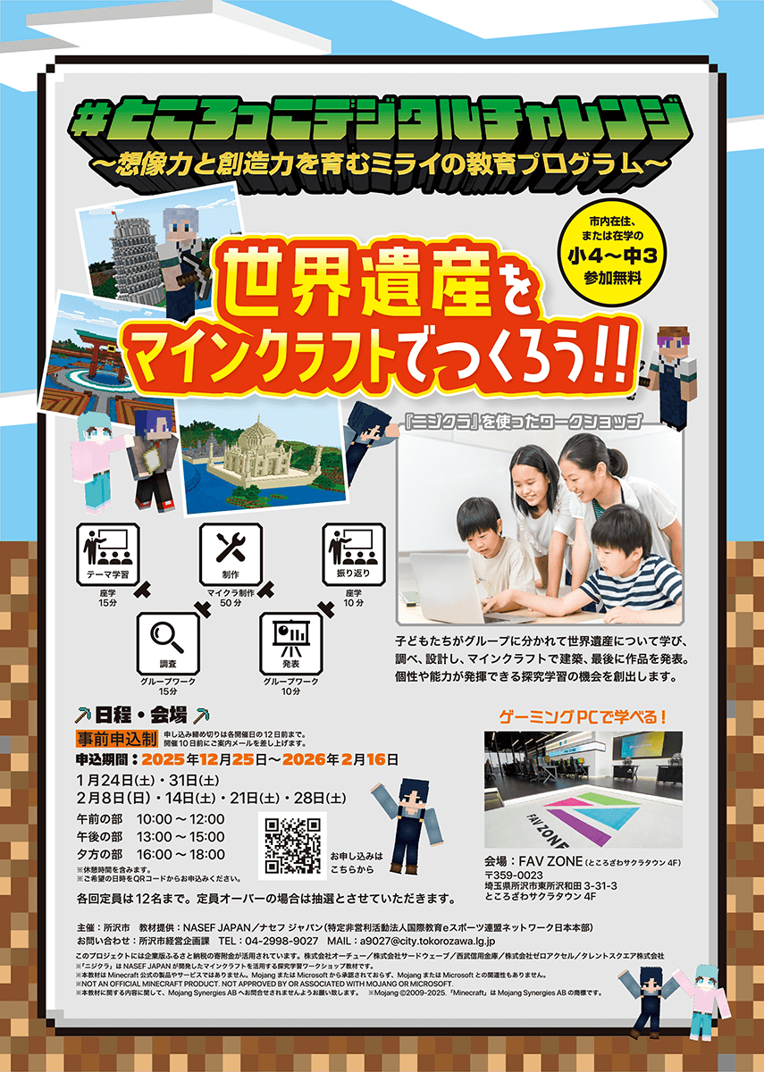 ※本教材に関する内容に関して、Mojang Synergies ABへお問合せされませんようお願い致します。