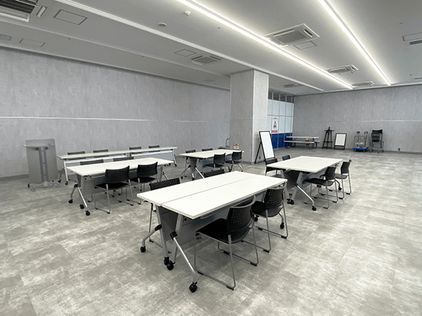 最大100名(スタンディング)を収容でき、飲食のご提供も可能な多目的空間です。