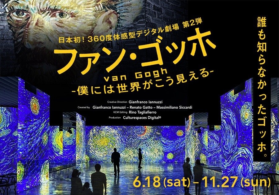 讓您置身於梵高眼中的世界,一場盛大的數位多感官體驗藝術展,於角川武藏野Museum 一樓的「大藝廊」舉行。通過360度投影於會場牆壁、地板的影像與音樂,展現出梵高眼中的世界的同時,更可以追溯這位充滿激情的畫家的一生。