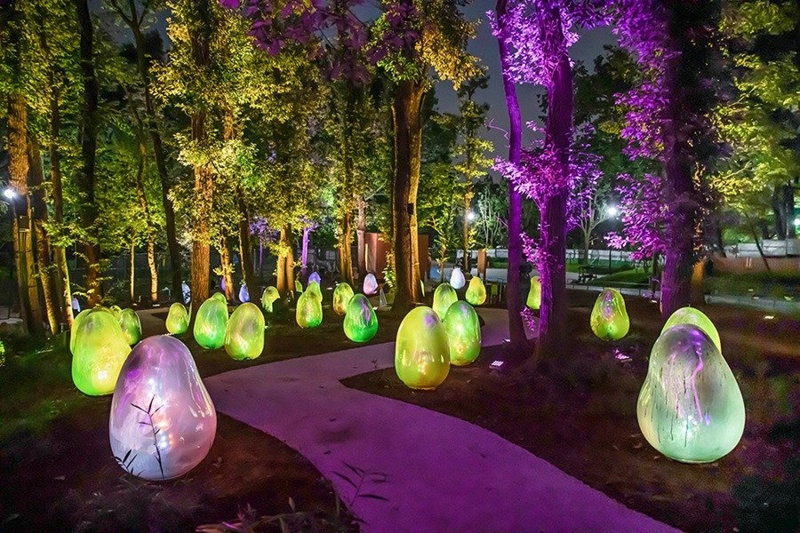 與之前舉辦燈飾展時一樣,樹上不會直接掛上燈飾照明,而是利用LED燈、珠光體去照射,以免影響樹木健康,同時用上色彩斑斕的裝飾,營造出馬戲團的世界觀,是能充分感受到日夜景色變換的打卡景點。